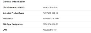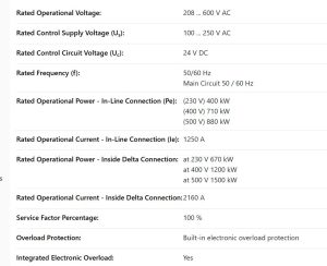 مشخصات فنی سافت استارتر ABB PSTX1250-600-70