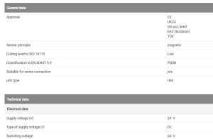 مشخصات فنی سویچ ایمنی مغناطیسی PILZ